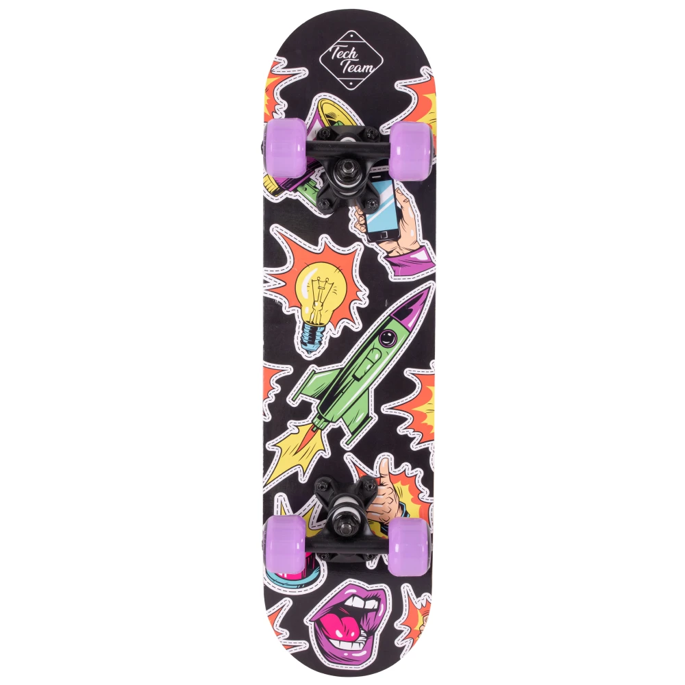 Скейтборд Tech Team Profi 2024 фиолетовый - это смесь классического стиля и современных технологий. Колеса из полиуретана размером 50x36 мм с жесткостью 85А обеспечивают стабильность и динамичность в движении. Дека, выполненная из 9 слоев высококачественного китайского клена, с размерами 24”х6”, обеспечивает уверенность в каждом движении. Черная шкурка 80AB на верхней части деки гарантирует отличное сцепление с ногой, а нижняя часть, украшенная ярким принтом в фиолетовых тонах, воплощает в себе дух свободы и бунтарства. Подшипники ABEC 5 обеспечивают плавное и быстрое движение. Двойной концевой загиб деки (Double Kick) позволяет легко выполнять сложные трюки. Этот скейтборд - ваш верный спутник в городских приключениях.
