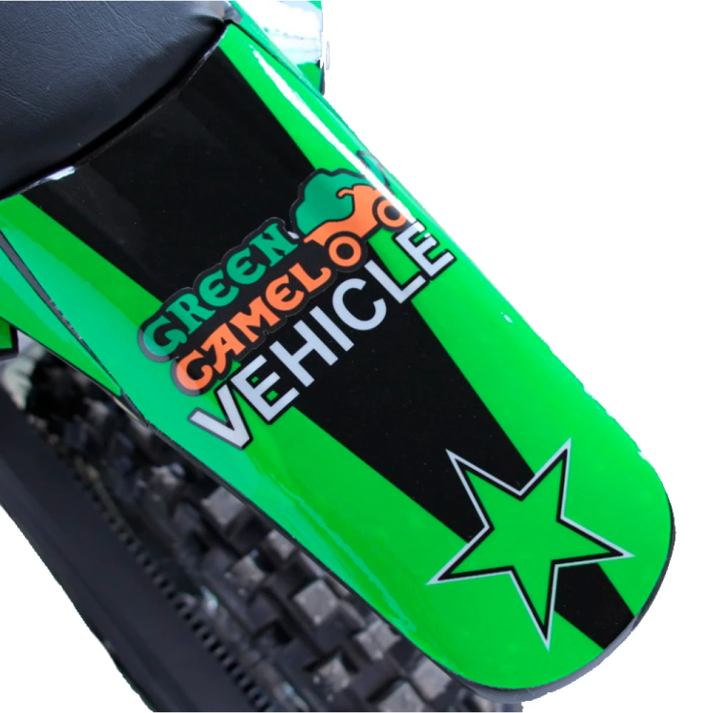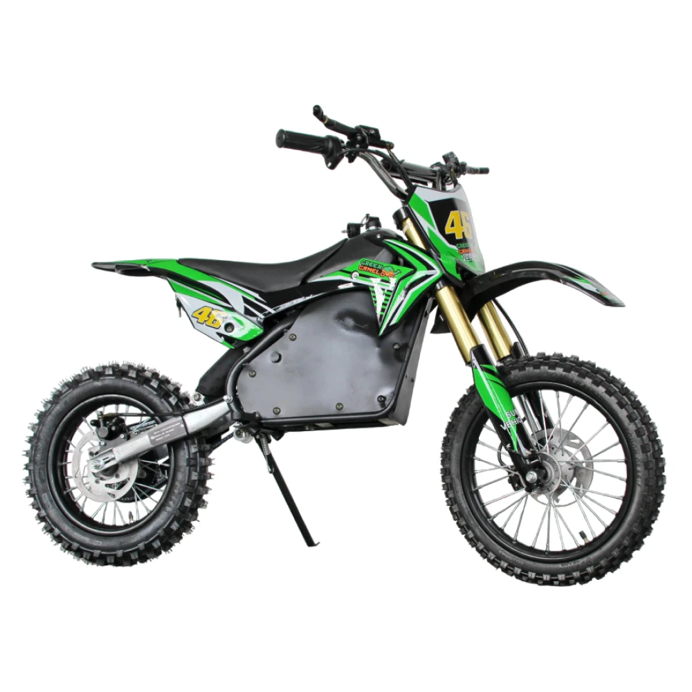 Электромотоцикл GreenCamel Питбайк DB500 в зеленом цвете - это уникальное транспортное средство, которое обеспечит вам незабываемые приключения на дорогах и трассах.