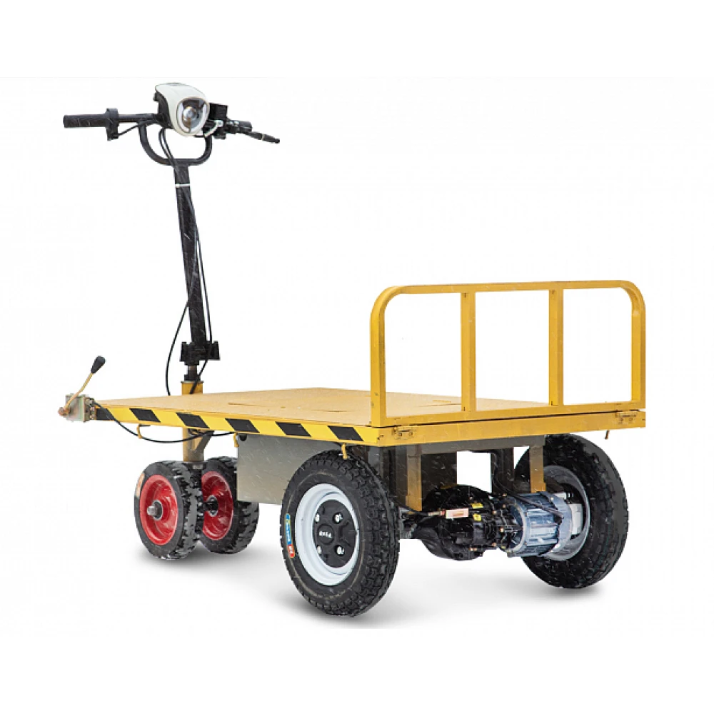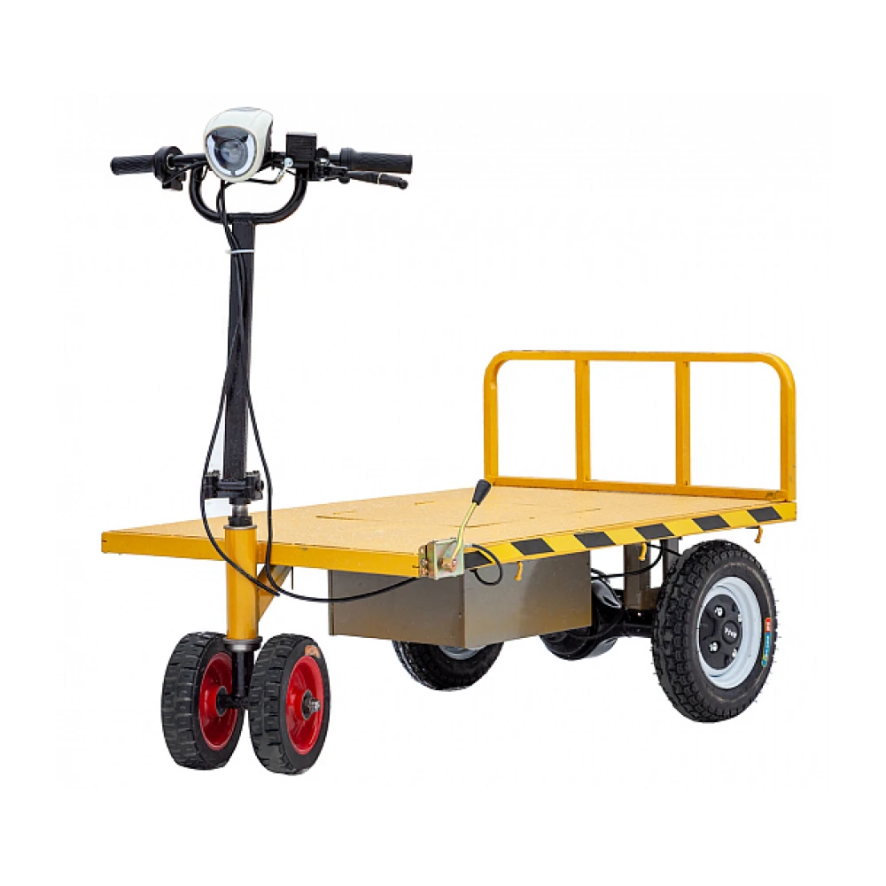 Также тележка востребована при выполнении строительных работ, на дачных участках, в туристических зонах и базах отдыха. Техника необходима везде, где требуется перевозка груза с минимальными трудозатратами. При мощности электродвигателя 800 Вт максимально возможная скорость достигает 25 км/час и преодоление дистанции на одной подзарядке – 20 км. Максимальная грузоподъемность позволяет перевозить грузы до 300 кг. Отличная вместимость обеспечена идеальными размерами платформы - 1200 х 800 мм. Модель оснащено мягким эргономичным седлом. Рулевая часть – прорезиненными нескользящими грипсами и информационным дисплеем, предоставляющим работника важные технические показатели. Заказать товар оптом и в розницу быстро предлагает наш интернет-магазина. Телефонный звонок или общение с менеджером в онлайн-чате ускорит процесс оформления заказа.