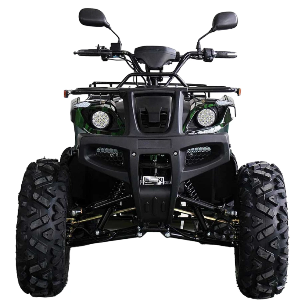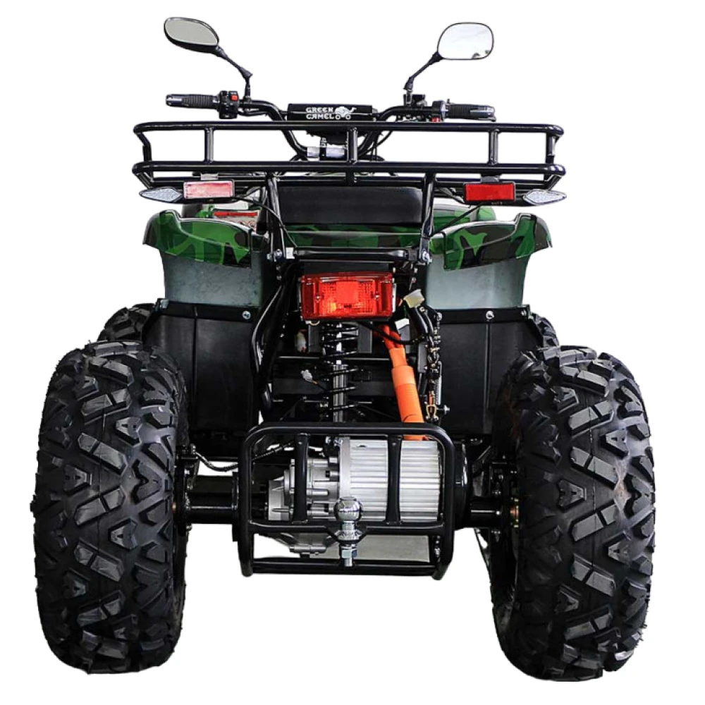 Электроквадроцикл достигает скорости до 50 км/ч. Батарея на 72V 3000W может проехать до 60 км на одном заряде. R12 alum дифференциал улучшает проходимость и стабильность на всех типах поверхностей. А зеленый цвет добавляет красоты и оригинальности.