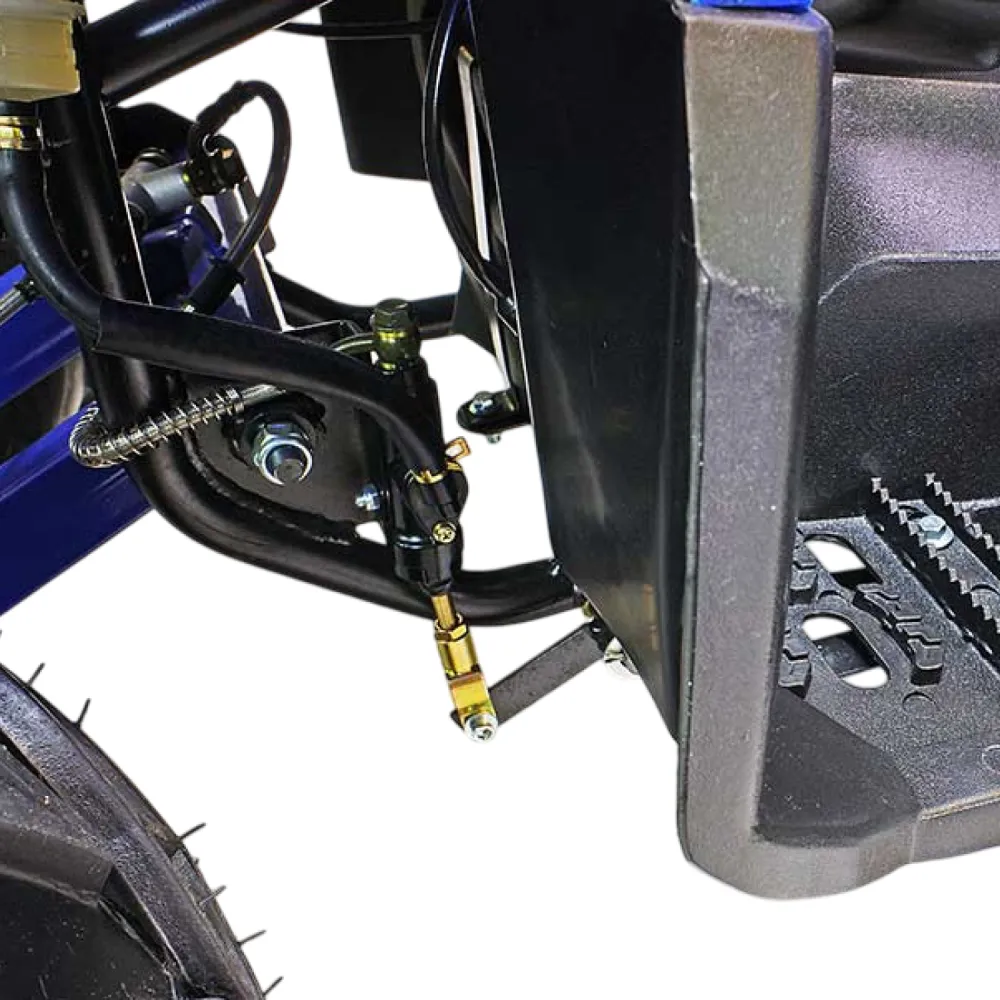 У GreenCamel Caxapa A1520 бесщеточный мотор типа BLDC, на выбор два вида батарей, штатная и более мощная. Разница заключается в запасе хода, ресурса и время зарядки батареи. Пружинные амортизаторы, тип передачи: дифференциал. Тормоза задние: ножной дисковый, передние тормоза барабанные. Пробег на одном заряде от 40 до 80 км. Зависит от выбранной зарядной батареи. У квадроцикла отсутствует спидометр. Максимальная нагрузка 125 кг.