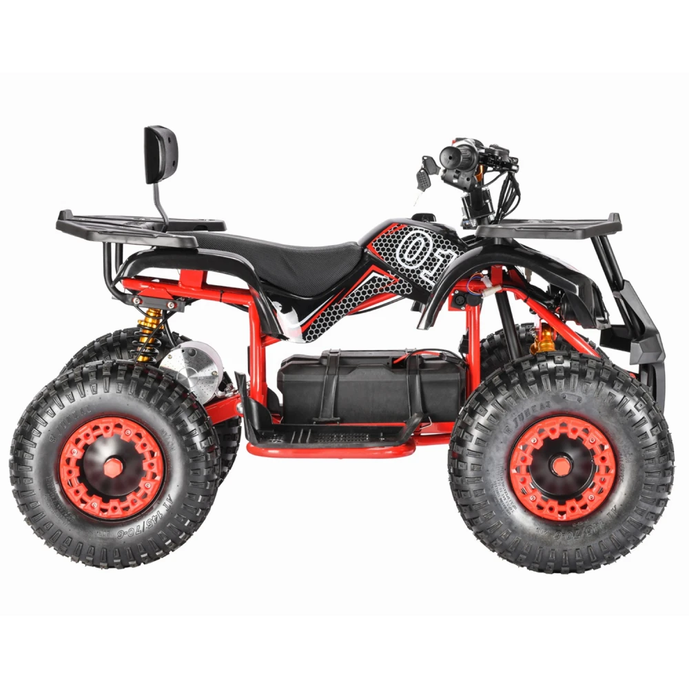 Квадроцикл представлен полной комплектацией, рассчитан на возрастную категорию от 3 до 9 лет. При мощности двигателя 1500 Вт способен развивать серьезную скорость – до 49 км/час. Продолжительность пути на одной подзарядке составляет 50 км. Максимальная грузоподъемность – 95 кг.