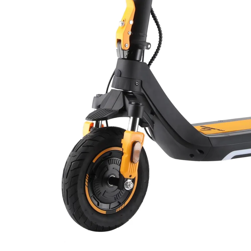Электросамокат Kugoo Kirin M3 Pro — мощный и технологичный транспорт для городских поездок и активного отдыха. Стильный дизайн в чёрно-оранжевой гамме сочетается с продуманной эргономикой: широкая платформа (220 мм) и руль (640 мм) обеспечивают комфорт даже при длительных маршрутах. При весе 25,5 кг модель остаётся мобильной — складная конструкция (1320×240×540 мм в сложенном виде) позволяет легко хранить самокат в квартире или перевозить в багажнике. Встроенный бесщёточный двигатель 600Вт который, разгоняет устройство до 41 км/ч, а трёхрежимная система регулировки скорости (20/31/41 км/ч) адаптирует поездку под любой сценарий. Запас хода на одном заряде — 52 км, благодаря литий-ионному аккумулятору NMC (48 В, 13 А·ч). Зарядка занимает 9 часов, а защита IPX4 гарантирует устойчивость к дождю и брызгам. Двойная тормозная система (дисковый + рекуперативный тормоз) сокращает тормозной путь до 10 м даже на высокой скорости. Пружинная амортизация передней и задней подвесок смягчает вибрации на неровных дорогах, а резиновые колёса (10 дюймов) обеспечивают сцепление с асфальтом. Ночные поездки безопасны благодаря светодиодной фаре, заднему фонарю, поворотникам и яркому ЖК-дисплею, отображающему скорость и заряд. Самокат выдерживает нагрузку до 120 кг и преодолевает подъёмы до 15°, что делает его подходящим для разных пользователей. Габариты в разложенном виде (1320×640×1290 мм) и высота платформы 240 мм от земли обеспечивают удобную посадку. Упакован в прочную картонную коробку (1345×290×595 мм), что упрощает логистику. Kugoo Kirin M3 Pro — идеальный выбор для тех, кто ценит скорость, надёжность и современный дизайн.