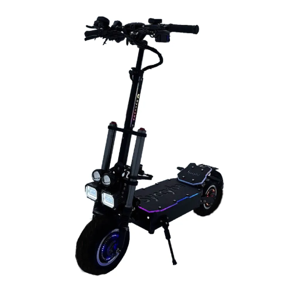 Электросамокат Syccyba R12 Pro - является одним из линейки мощных электросамокатов. Инженеры в ходе разработок усовершенствовали в модели R12 Pro колеса, в электросамокате удобные и маневренные шоссейные покрышки диаметром 12 дюймов, которые способны преодолеть любую дорогу, теперь на них даже неопытный новичок может чувствовать себя уверенно. Одним из преимуществ электросамоката Syccyba R12 Pro мощные аккумуляторы благодаря чему электросамокат имеет запас хода до 100 км, также электросамокат Syccyba оснащен электродвигателем мощностью 6000 Вт и может набирать максимальную скорость до 90 км/ч. Электросамокат Syccyba R12 подходят как для взрослых, так и для молодежи, модель R12 обладает впечатляющим внешним видом и отличным управлением, сзади на электросамокат установлены два удобных упора под ногу, которые являются также защитой от брызгов. Производители установили на электросамокат Syccyba R12 Pro хорошую, мощную подсветку, которая обеспечит вашу безопасность в ночное время суток. Еще одним преимуществом электросамоката является легкий при своих габаритах вес 59.6 кг , а качество управлением руля не только легкое, но и удобное. Купить электросамокат Syccyba R12 Pro по выгодной цене, а также аксессуары для вашего электросамоката вы можете на нашем официальном сайте интернет-магазина.