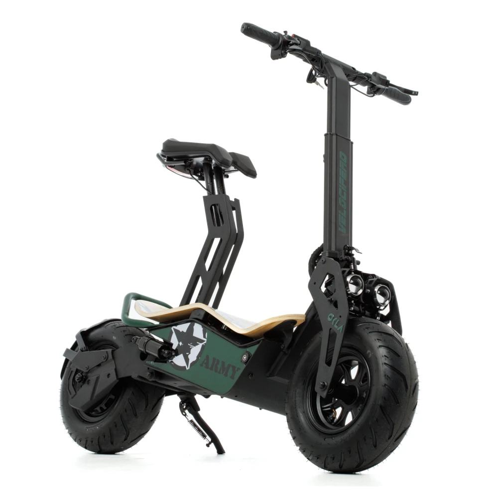 Компактный и стильный дизайн Velocifero MAD 1000W (Army) делает его идеальным выбором для городской среды или приключений за пределами города. Вы сможете маневрировать с легкостью по узким улицам и вести активный образ жизни, не теряя при этом стиля.