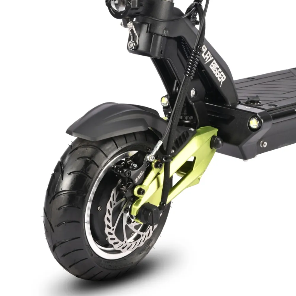 11-дюймовые накатистые колеса в сочетании с двигателем мощностью 3600 Вт способны развивать скорость до 75 км/час. Запас хода составляет 70 км. С  такими параметрами покупка дополнительных средств безопасности для ездока является обязательной. Модель выглядит привлекательно и современно. Оснащена вместительно прорезиненной платформой. Рулевая часть – удобная, оснащена нескользящими грипсами. Имеет информационный дисплей, благодаря которому пользователи способен мониторить скоростные показатели, степень заряда батареи и другие. Своевременность остановки обеспечена современной гидравлической тормозной системой. Наличие эргономичное подножки допускает парковку в труднодоступные места. Для заказа тс быстро предлагаем связаться с нами прямо сейчас.