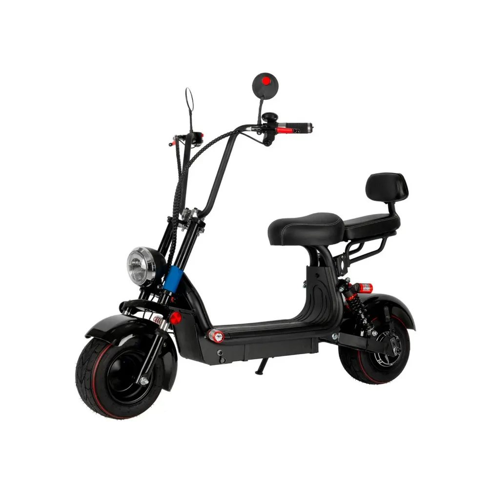 Электроскутер Mini Citycoco GT X2 оснащен колесами в 10", обеспечивающими плавное движение и амортизацию на любой дороге, так же максимальная нагрузка в 150 кг. и наличие двух сидений даёт возможность ездить на скутере вдвоём. Система гидравлического торможения обеспечит дополнительную безопасность при движении, а фонарь позволит совершать вечерние и ночные комфортные катания.