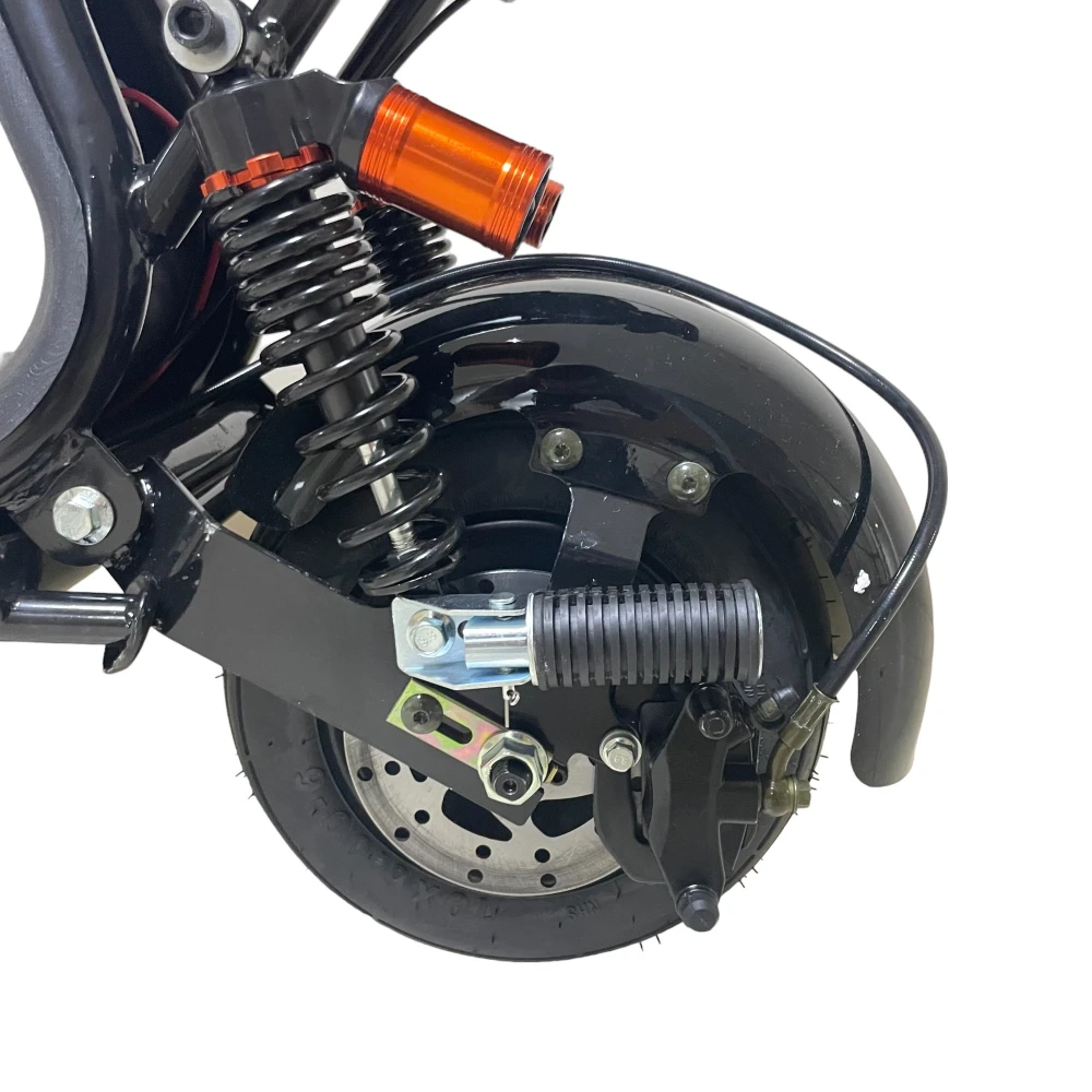 Технические характеристики (мощность электродвижка 1000 Вт) позволяют развить скорость до 30 км/час. Наличие емкой батареи (13А*ч) позволяет довольствоваться пробегом на одной подзарядке до 25 км. Полное время зарядки – 6-7 часов. Конструкция изготовлена из инновационного алюминия, не деформируется при максимальной нагрузки до 180 кг. Безопасность и своевременность остановки гарантированы дисковой механической тормозной системой, зеркалами заднего вида и бортовым компьютером. 10-дюймовые широкие колеса – устойчивые и накатистые. Плавность хода обеспечена наличием амортизаторов. Для оформления заказа быстро, предлагаем сделать телефонный звонок менеджеру магазина.
