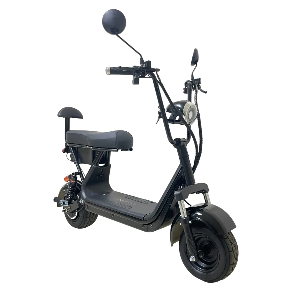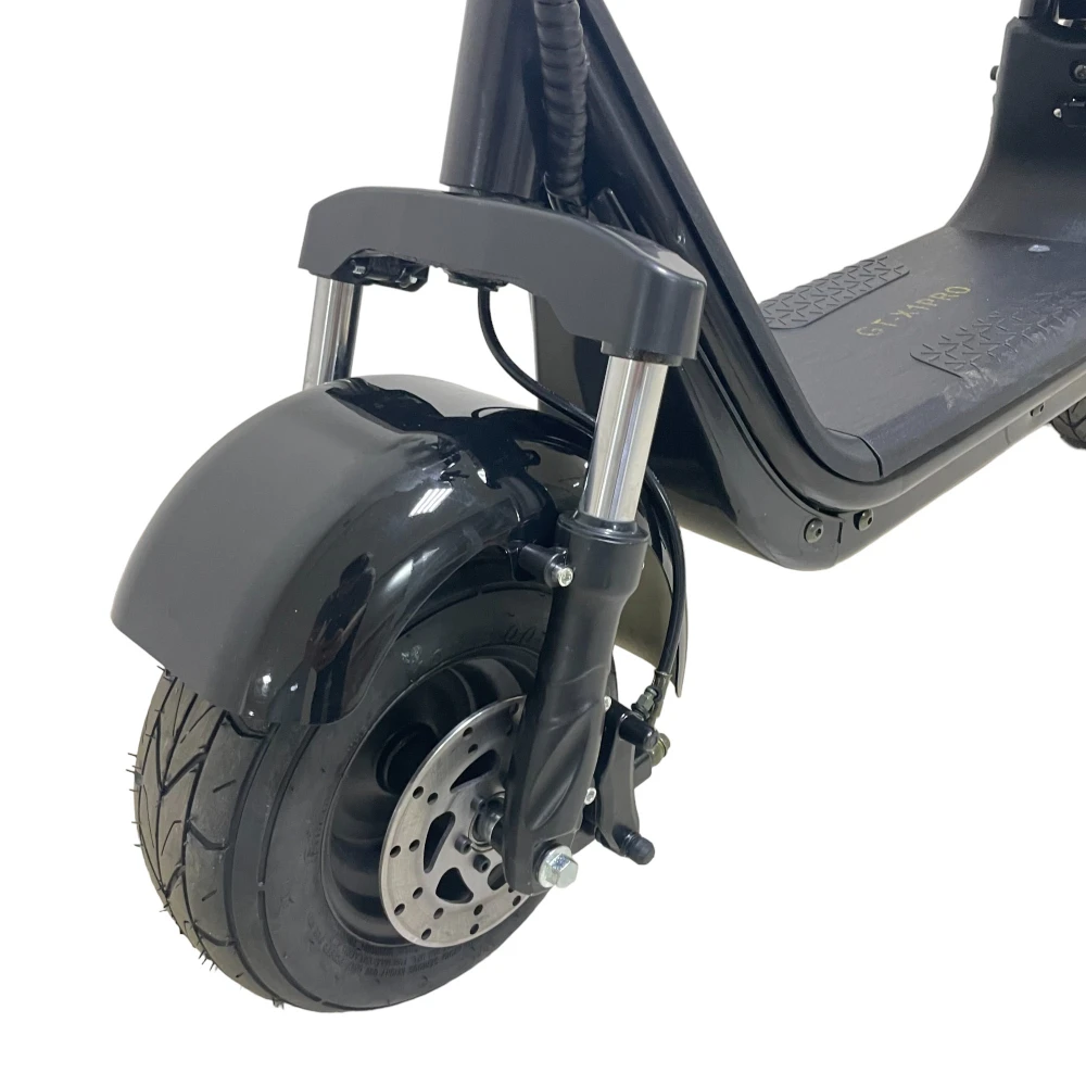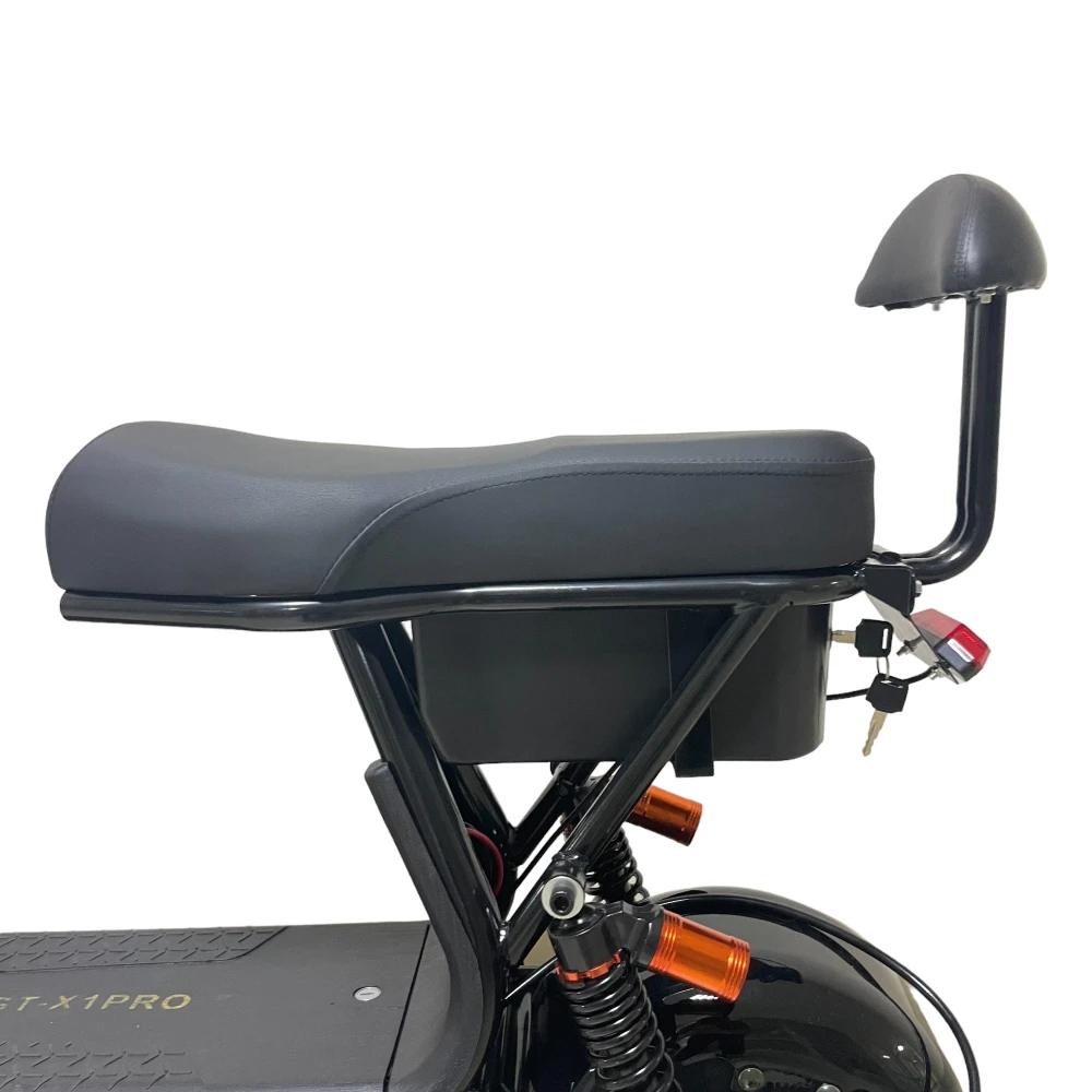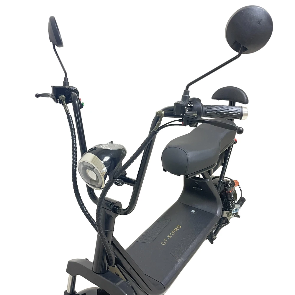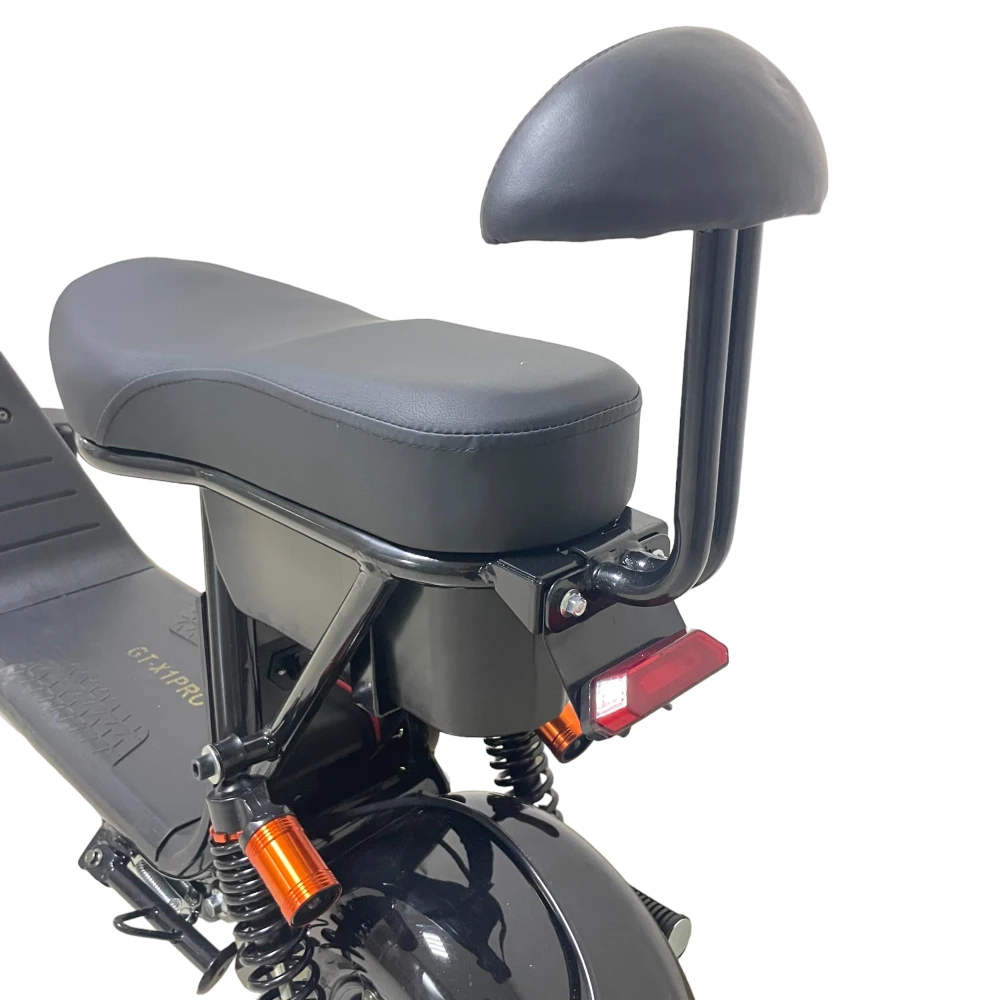 Электроскутер CityCoco GT-X1 PRO Mini черный – эргономичная техника рассчитана на водителя и пассажира. Оснащена большим мягким водительским седлом и компактным пассажирским. Последнее оснащено спинкой, увеличивающей степень комфорта при езде на дальние расстояния. Купить электроскутер без посредников и торговых надбавок предлагает наш интернет-магазин.