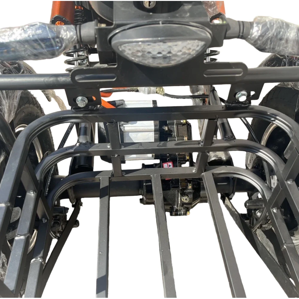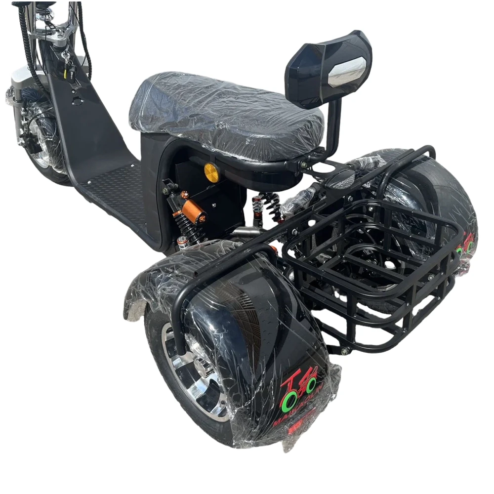 Скутер оснащён мощным двигателем 2000 Вт с воздушным охлаждением, обеспечивающим максимальную скорость до 45 км/ч. Он легко справляется с подъёмами и неровными дорогами, сохраняя устойчивость и динамику даже при полной нагрузке.