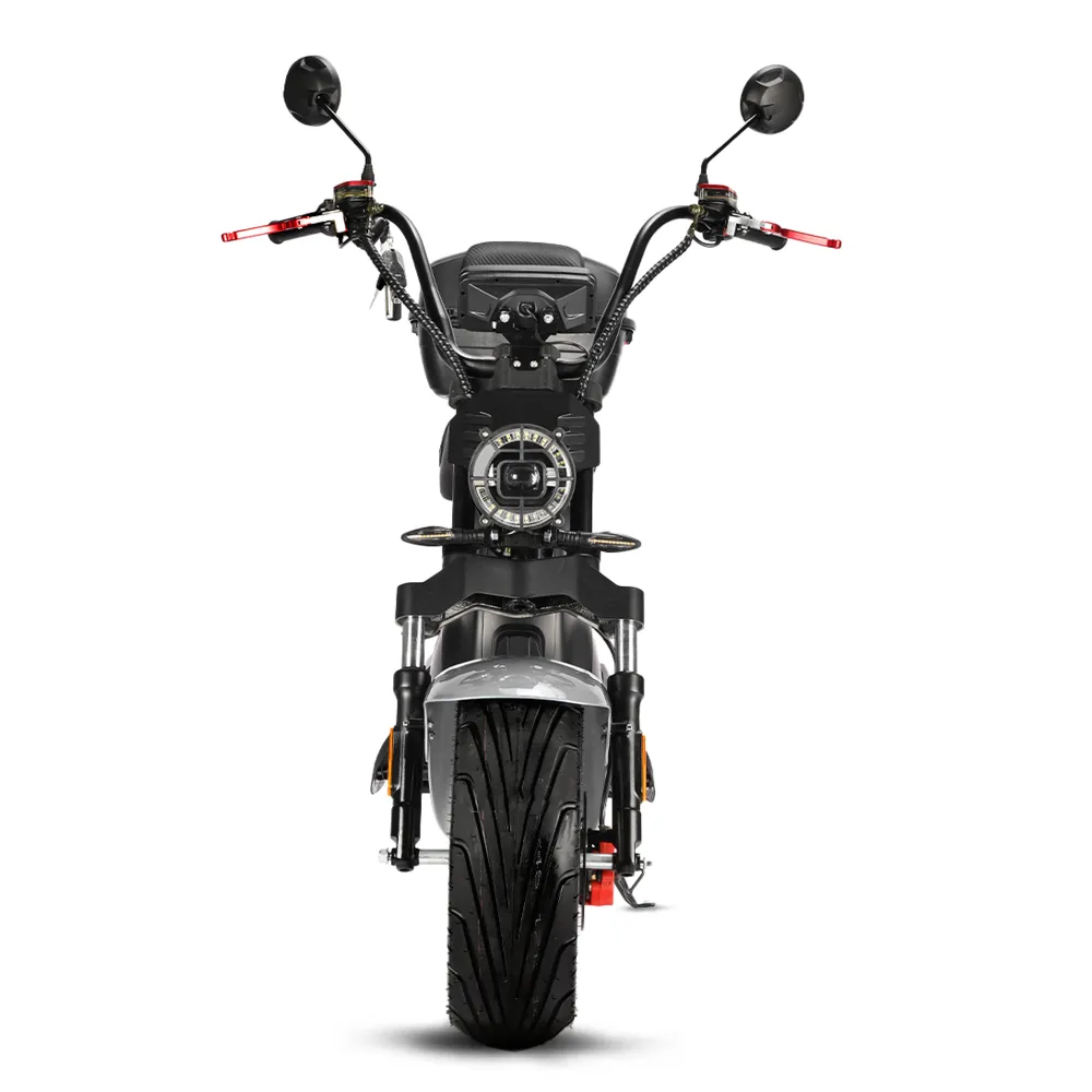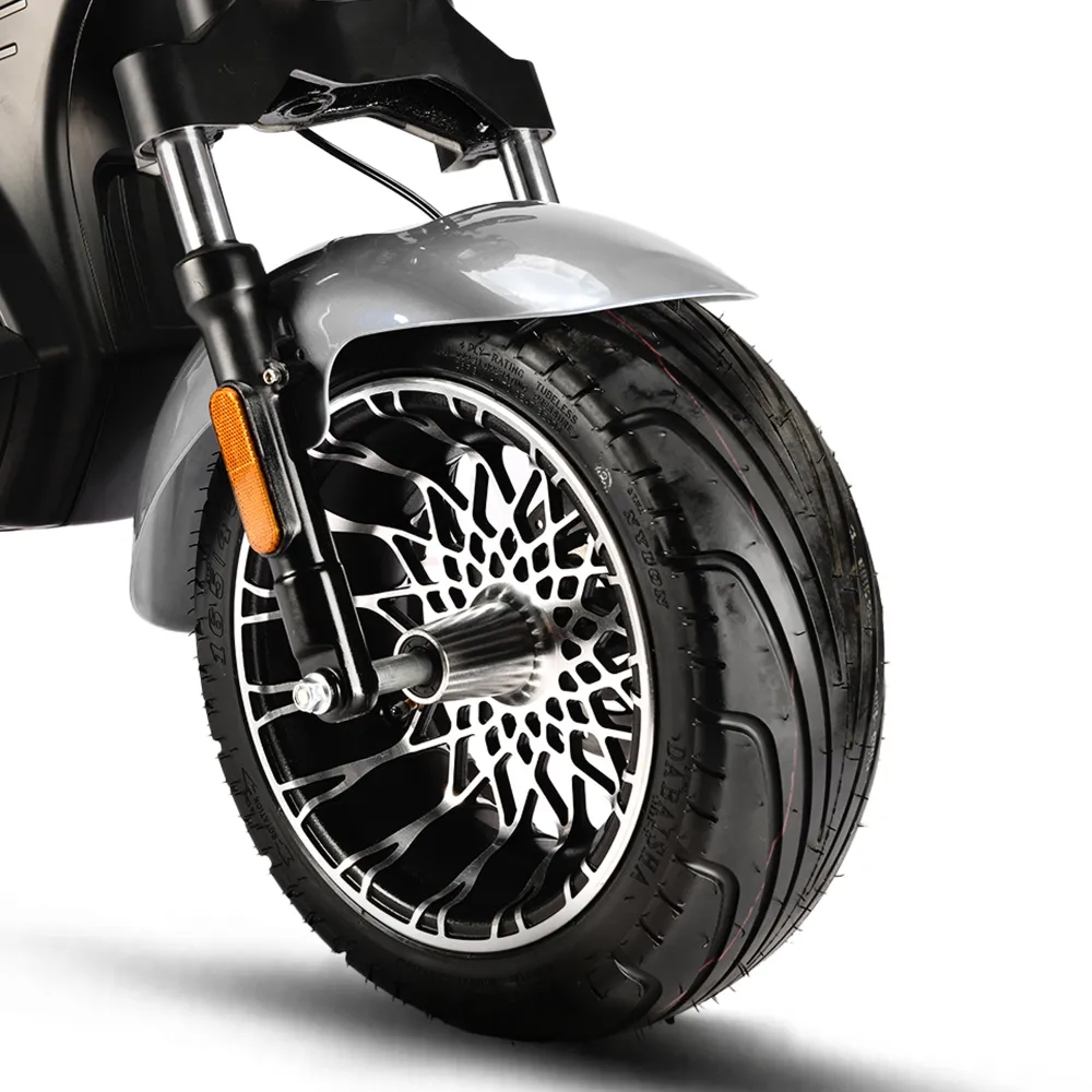 Перед покупкой электроскутера производитель настаивает обратить внимание на преимущества: скоростные параметры, комфорт и безопасность передвижения. При мощности электродвигателе в 5000 Вт способна развивать скорость авто – до 85 км/час. Накатистые 12-дюймовые колеса без труда преодолевают препятствия. Выглядят мощными, легко сцепляются с разными видами грунта. Комфорт езды гарантирован удобным мягким сиденьем, которое рассчитано на продолжительную езду без ощущения усталости и проблем с позвоночником. Оснащенность модели бортовым компьютером позволяет контролировать скорость, протяженность пути и степень заряда батареи. Большая светодиодная фара допускает поездки в ненастье, проблематичное время. Оснащенность зеркалами заднего вида помогает контролировать ситуацию на дороге. Для оформления покупки электроскутера без переплат и посредников, предлагаем связаться с нашим оператором.