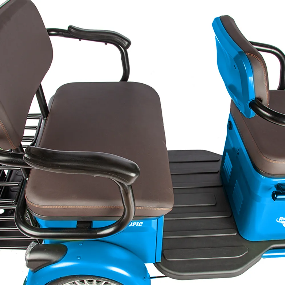 Электротрицикл Rutrike Топик – новая модель от производителя rutrike. Может использоваться в грузовых целях и для туристического бизнеса. На этапе изготовления производитель сделал максимум, чтобы электротрициклы rutrike были надежными и приятными по дизайну, отличными в ходовке и одними из самых комфортных. Купить Электротрицикл Rutrike Топик снабженный максимальным функционалом по выгодной стоимости позволит сотрудничество с нашим интернет-магазином. Трицикл rutrike топик оснащен стальной мощной рамой. Наличие в электротрицикле качественных удобных двухрядных сидений обещают прекрасное и комфортное время провождение. Мощную тягу rutrike топик обеспечивает качественная комплектация. В новых моделях электротрицикла установлен электродвигатель мощьностью на 800 Вт и емкая батарея на 20Ah, что позволяет развить скорость до 25 км/ч и проехать до 30 км пути на одном заряде. Безопасность гарантирована хорошим светодиодным освещением и качественными тормазами. Для заказа электротрицикла топик от производителя rutrike предлагаем сделать звонок менеджеру или связаться с ним в чате.