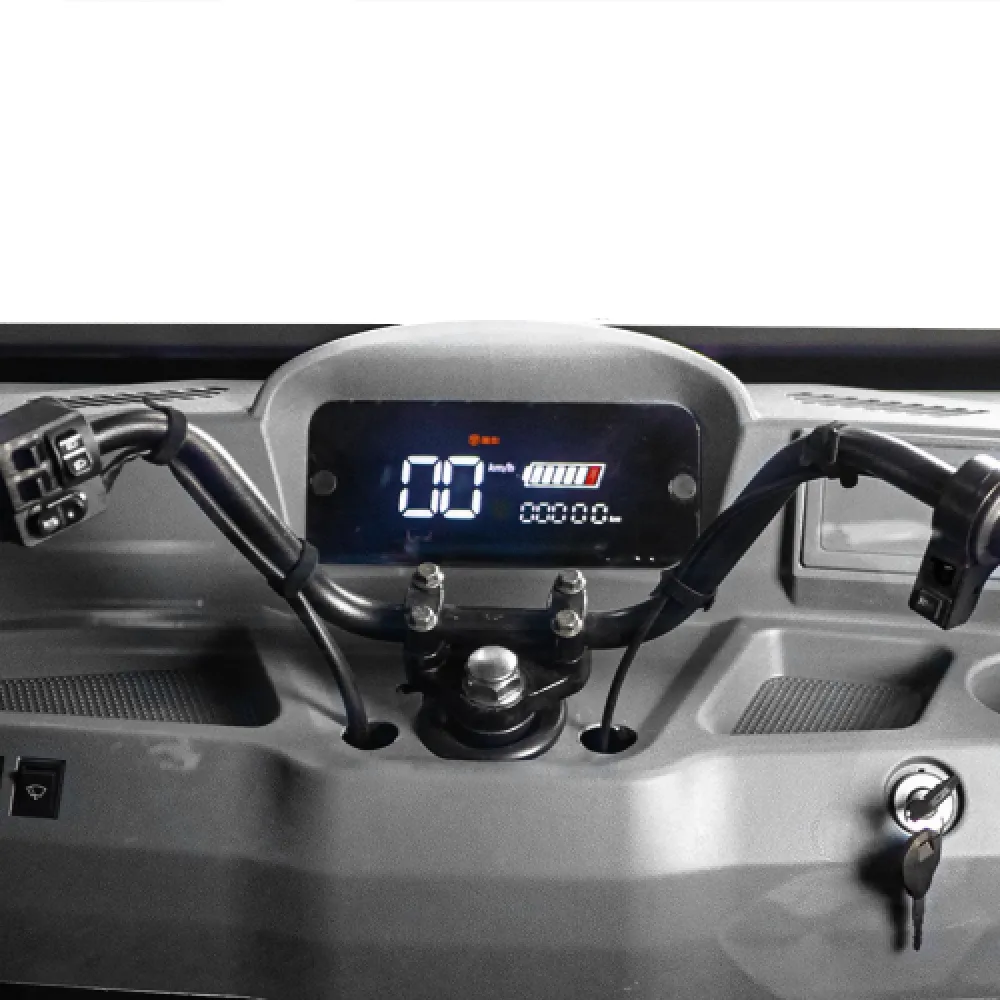 Серый Rutrike КАРГО Кабина 1500 - это надежный партнер для вашего бизнеса. Закрытый кузов защищает водителя от непогоды, позволяя работать в любых условиях. Грузовой отсек размером 1500×1050×330 мм готов принять на борт до 600 кг груза, что делает этот трицикл идеальным для городских перевозок. Мощность 1000 Ватт позволяет преодолевать до 40 км на одном заряде, а максимальная скорость составляет 25 км/ч. Управление осуществляется через мотоциклетный руль, что добавляет маневренности, а задний барабанный тормоз обеспечивает безопасность. Rutrike КАРГО - ваш верный помощник в логистике.