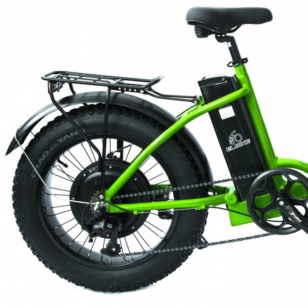 Электрофэтбайк Elbike Taiga 1 St зеленый – лучшее предложение сезона 2022. Техника массой 30 кг и грузоподъемностью 150 кг оснащена 20-дюймовыми колесами с широкими покрышками. С легкостью преодолевает проблематичную глинистую и песчаную поверхность, считается вездеходной. Купить модель по приемлемой стоимости предлагает наш интернет-магазин.