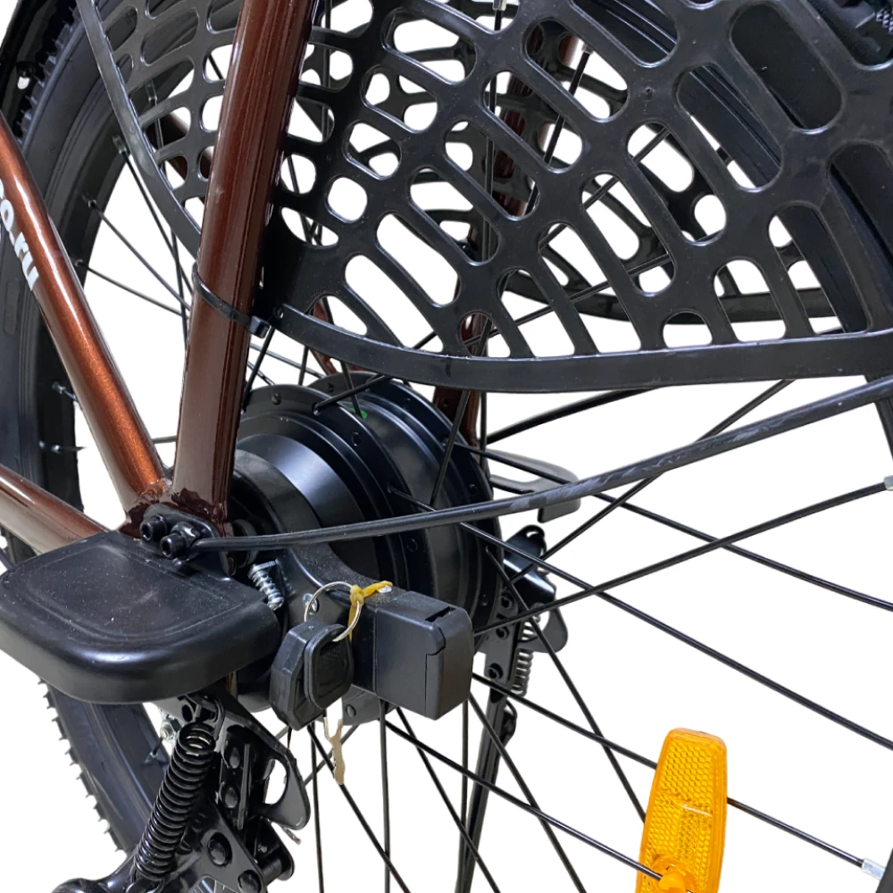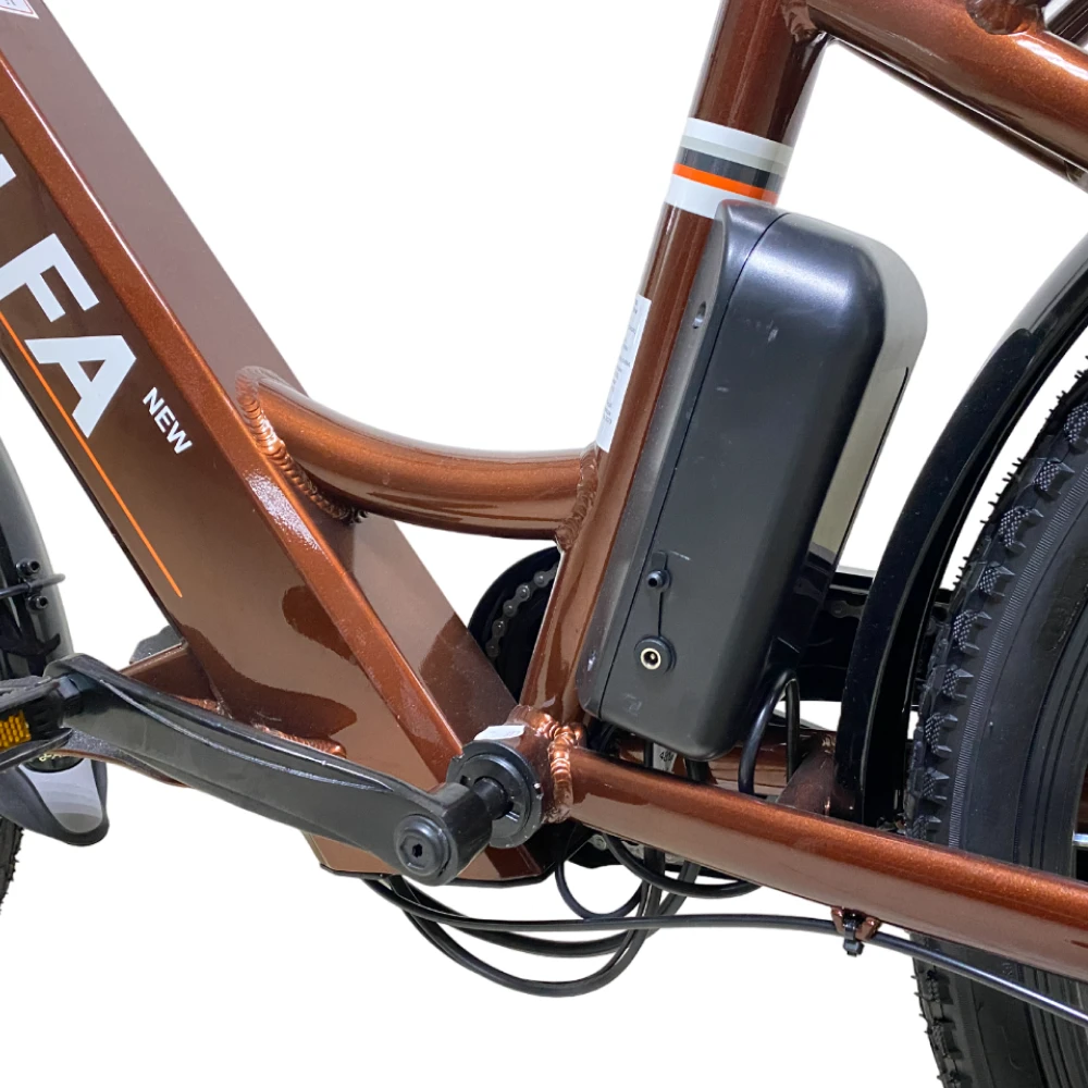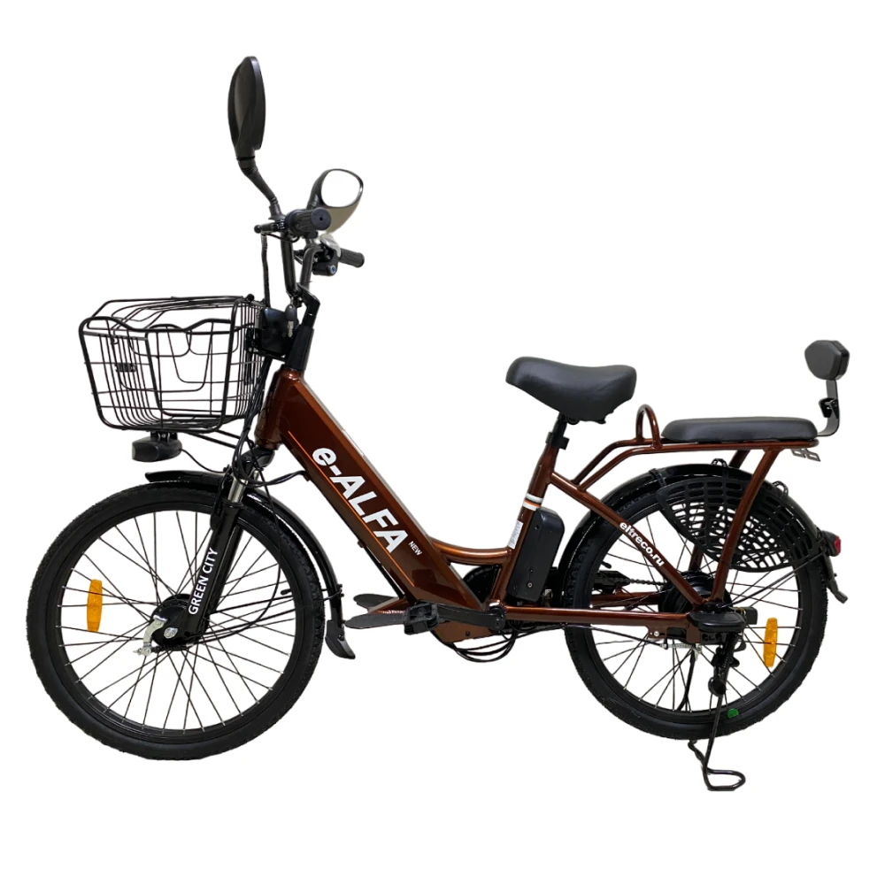 Это транспортное средство которое оснащено электроприводом, аккумулятором, контроллером. Очень сильно отличается от простого сородича. Имеет свои плюсы, модель электровелосипеда GREEN CITY E-ALFA NEW стильного, модного коричневого цвета, без рамки позволяет использовать как молодым людям, так и девушкам. Усиленная рама из алюминия придает легкости, изящность и неповторимости. Но несмотря на свою легкость, очень прост в эксплуатации легко справляется со всеми возвышенностями.