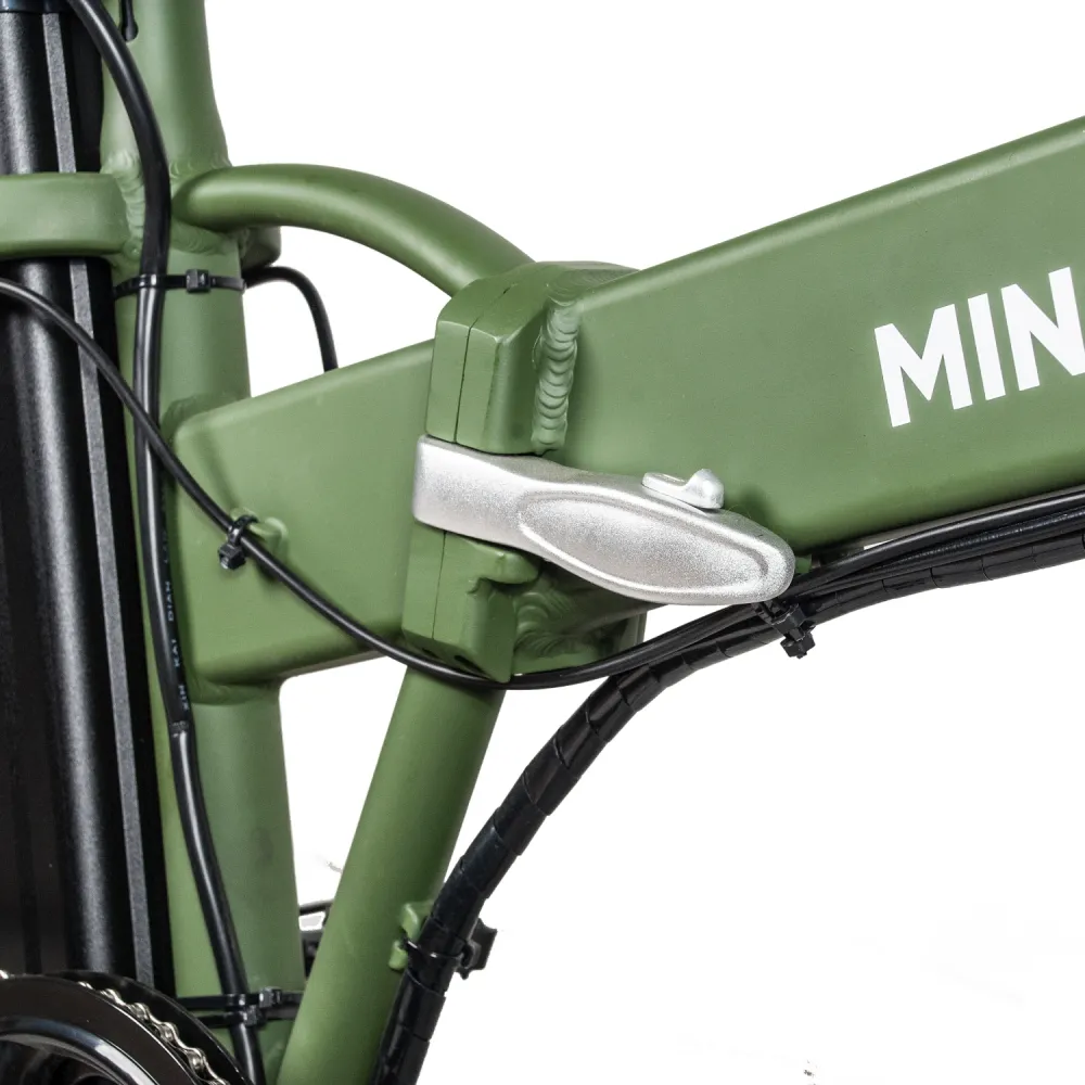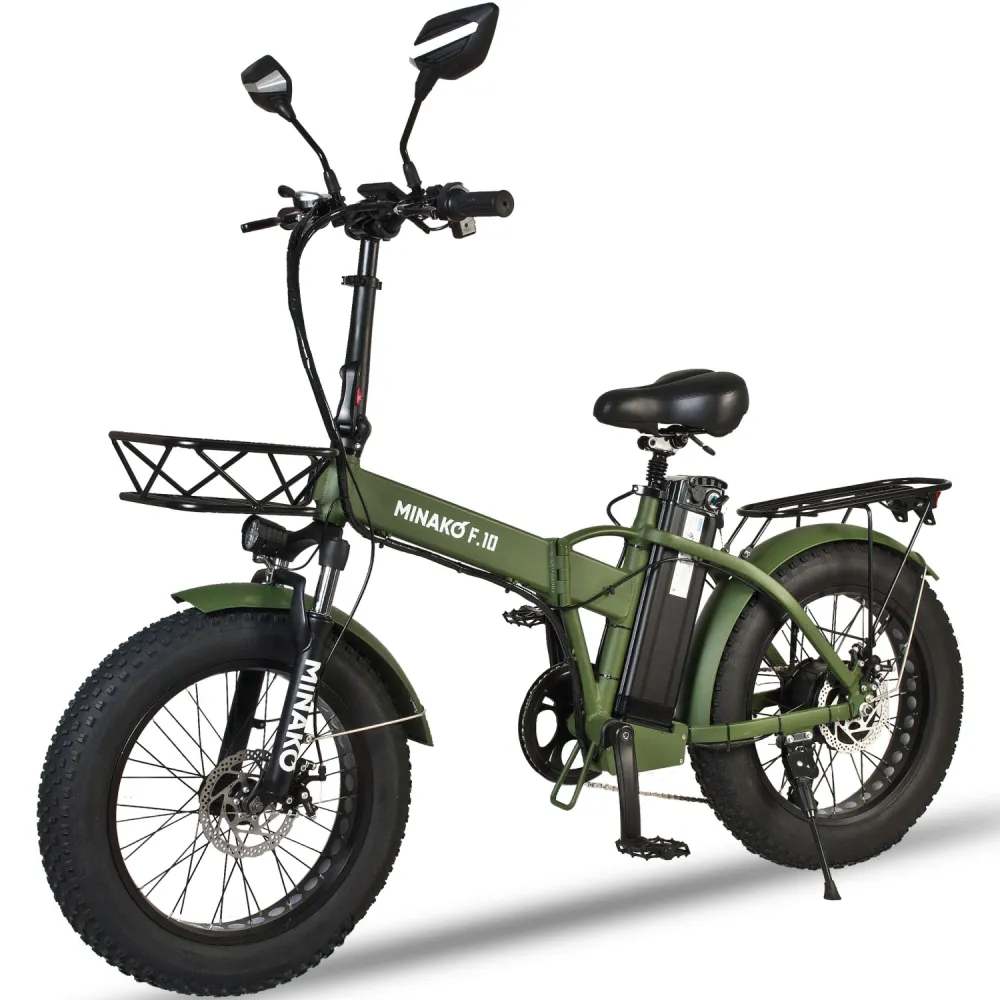 ЭЛЕКТРОВЕЛОСИПЕД MINAKO F10 хаки – выглядит круто и броско в сравнении с аналогичной техникой. При весе 27 кг модель рассчитана на грузоподъемность до 120 кг. Технические характеристики допускают эксплуатацию байка в городской и дачной местности. Для приобретения модели по приемлемой цене предлагаем сделать телефонный звонок менеджеру нашего интернет-магазина.