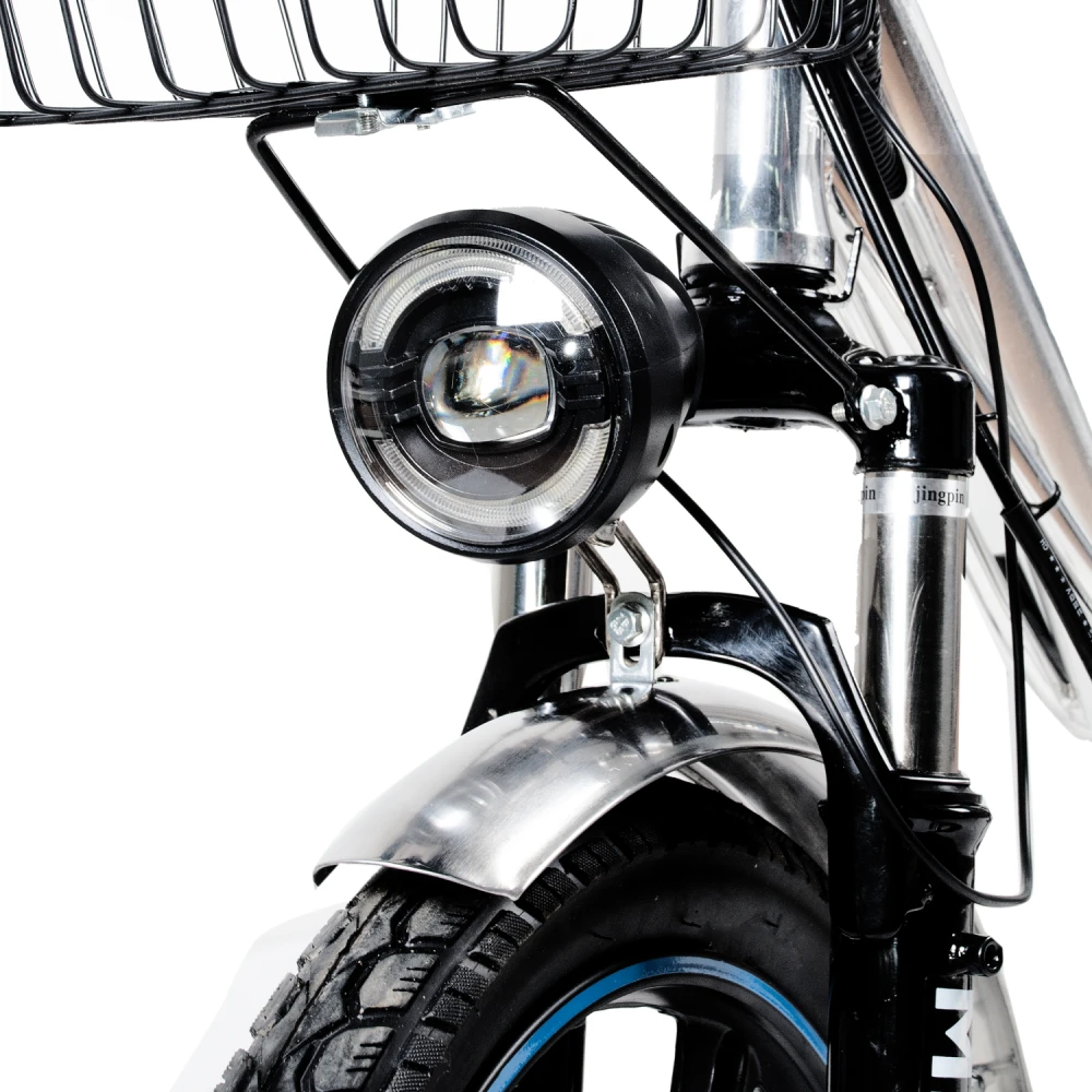 Комплектация велосипеда довольно богатая. В отличие от конкурентов, велосипед по умолчанию имеет зеркала заднего вида, корзинку на руле, подножку и багажник, и это не смотря на то, что он комплектуется дополнительной батареей!