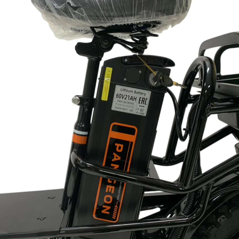 Электродвигатель BLDC DirectDrive с пиковой мощностью 1500 Вт обеспечивает уверенный разгон и стабильную работу даже на сложных участках. Литиевый аккумулятор 60V/21Ah позволяет проехать до 80 км на одном заряде, а время полной зарядки составляет около 7 часов.