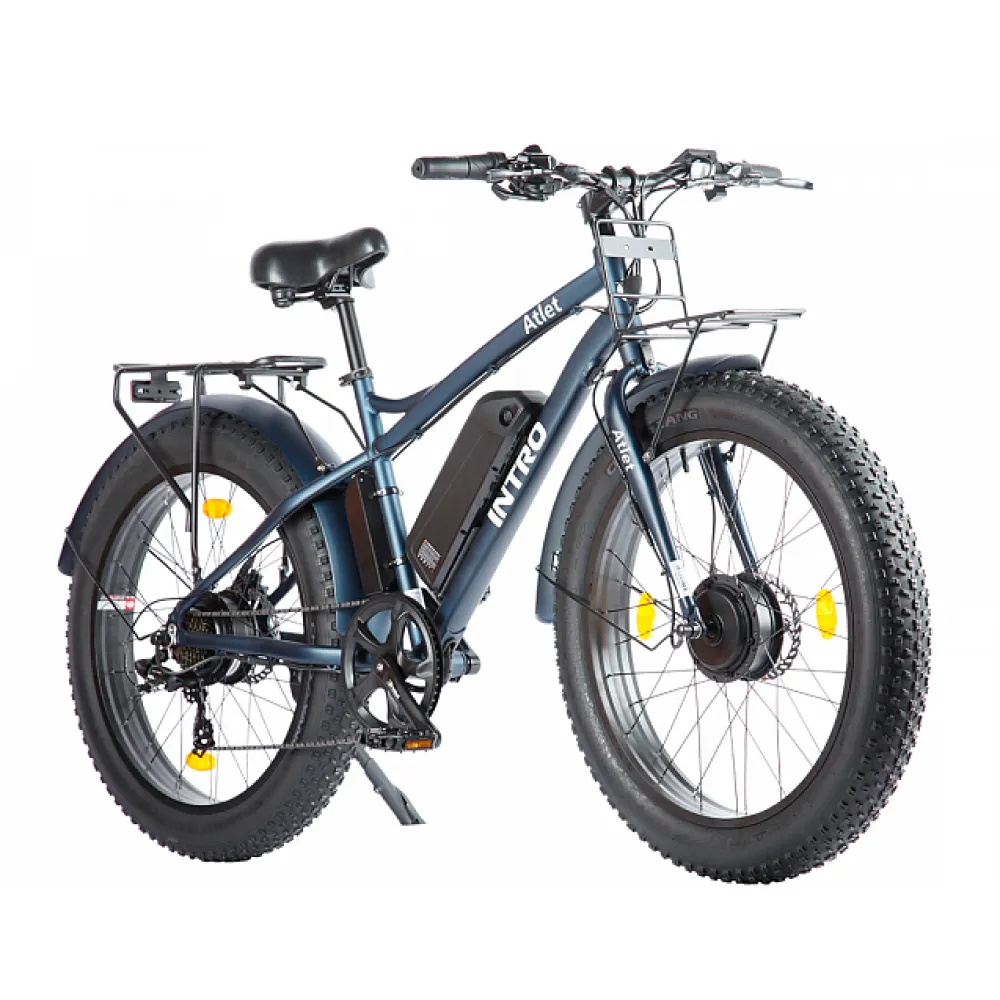 Электровелосипед INTRO Atlet в сером цвете - это сила и стиль, упакованные в одном уникальном транспортном средстве. Он оснащен полным приводом с двумя мотор-колесами по 500W каждое, что обеспечивает впечатляющую скорость до 45 км/ч. Это идеальный выбор для тех, кто ценит быстроту и эффективность в передвижении.