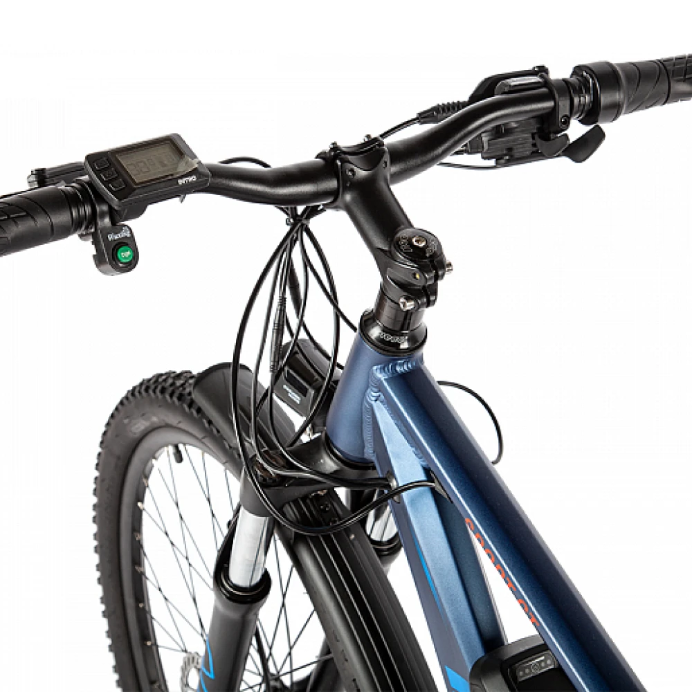 INTRO Sport XT оснащен мощным 500-ваттным двигателем и аккумулятором емкостью 10 Ah, что позволяет ему легко преодолевать горные участки и поддерживать высокую скорость. Благодаря своей гибридной конструкции, этот велосипед подходит как для городских поездок, так и для активного отдыха на природе.