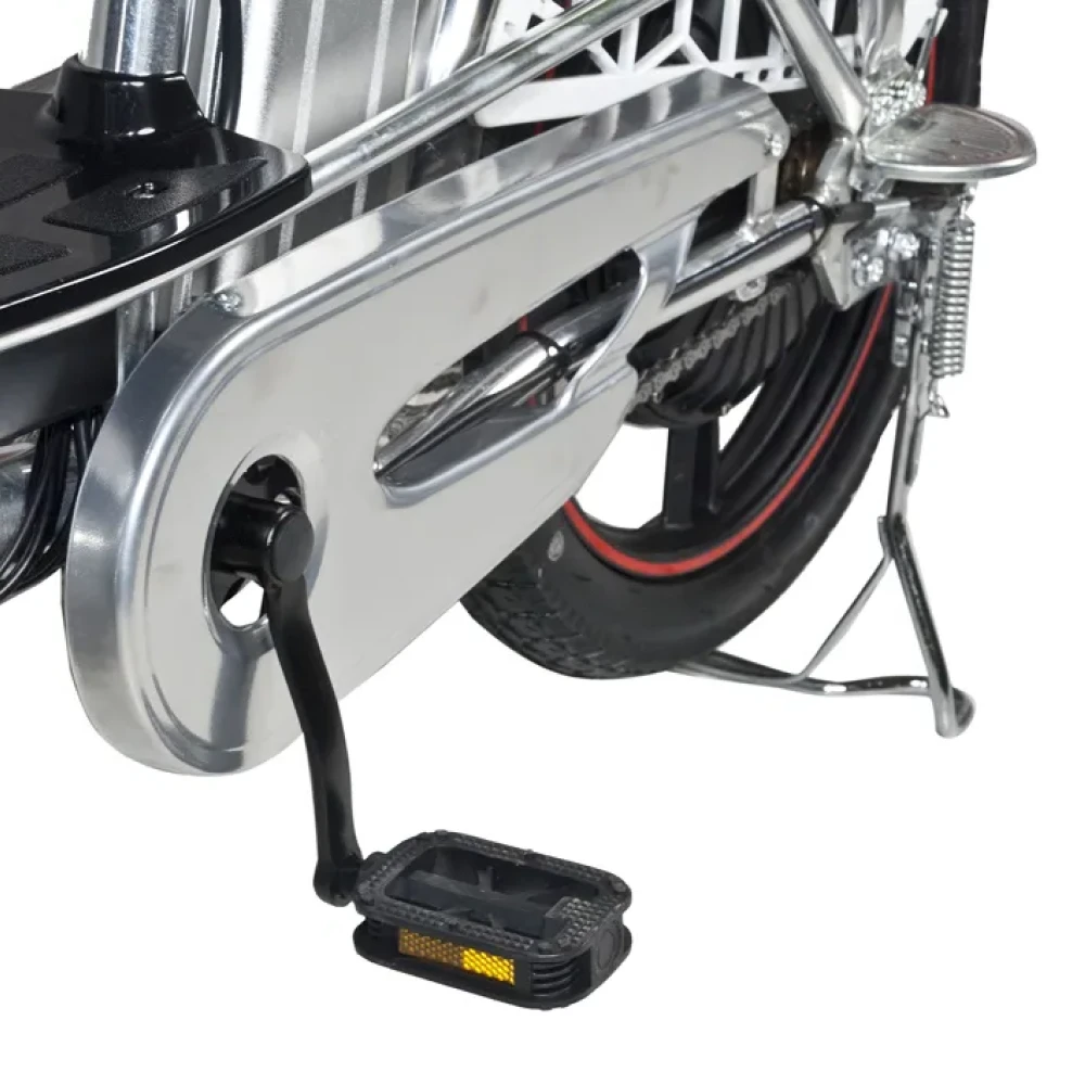Электровелосипед Jetson Pro Max Ultra Plus (60V30Ah) – это ваш надежный спутник в городских джунглях и загородных поездках. Элегантный серебристый цвет корпуса гармонично сочетается с функциональностью и технологичностью, а формат "колхозник" с просторной платформой для ног обеспечивает удобство при движении. Мощный 500W двигатель в сочетании с задним гидравлическим дисковым тормозом и передним барабанным обеспечивают надежную и безопасную езду. Литые диски и амортизация спереди и сзади делают каждую поездку плавной и комфортной. Съемный аккумулятор на 30 Ah, расположенный за сиденьем, дает возможность преодолевать расстояние до 110 км в режиме ассистента. Диаметр колес 18 дюймов, а удобное сиденье и возможность перевозки второго пассажира дарят комфорт и удовольствие от каждой поездки.