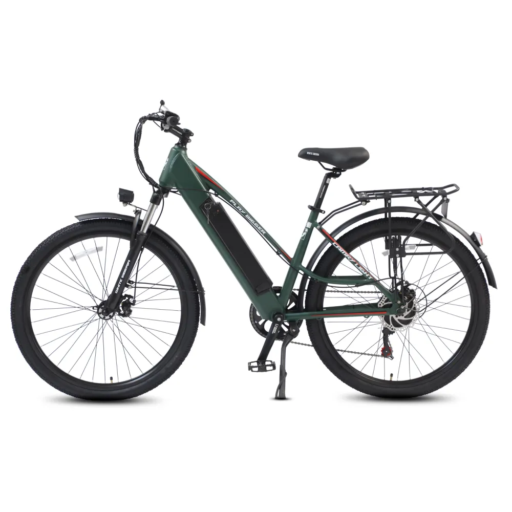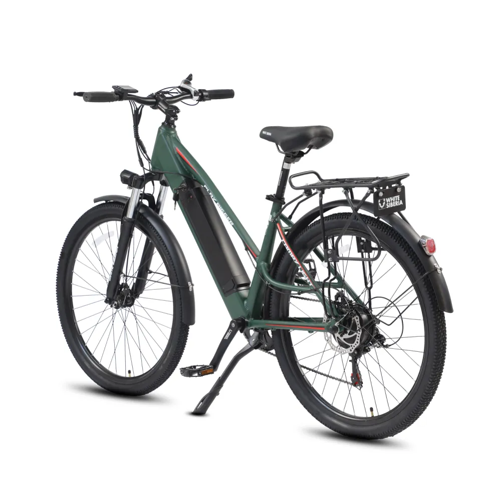 Электровелосипед WHITE SIBERIA CAMRY LIGHT 500W в матовом зеленом цвете – мечта каждого активного райдера. Техника весом 23 кг изготовлена из высокопрочного авиаалюминия прочного, надежного и долговечного. Модель считается универсальной, может использоваться в качестве каждодневного вида транспорта и для езды на дальние расстояния, в хорошую и плохую погоду, по ровным дорогам и неровностям. Удобная геометрия рамы не вызывает проблем с посадкой у представительниц слабого пола. Оснащенность тс электромотором на 500 Вт и емкой батареей дает возможность комфортного продолжительного путешествия. Удобное регулируемое седло повторяет анатомические части тела ездока, снижает нагрузку на позвоночник. Информационный компьютер предоставляет полезную для райдера информацию. Колесная часть – качественная и накатистая. 27,5 дюймовые колеса с широкими покрышками, маневренные и скоростные, отлично сцепляются с разными видами грунта. Оснащенность электровелосипеда крыльями увеличивает срок службы техники. Наличие заднего багажника дает возможности перевозки небольших грузов. Для заказа электровелосипеда выгодно предлагаем связаться с нами в телефонном или онлайн-режиме.
