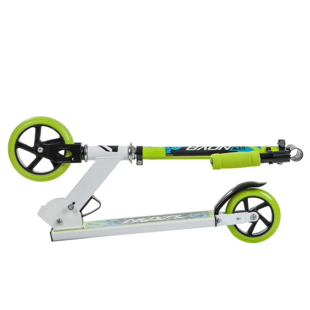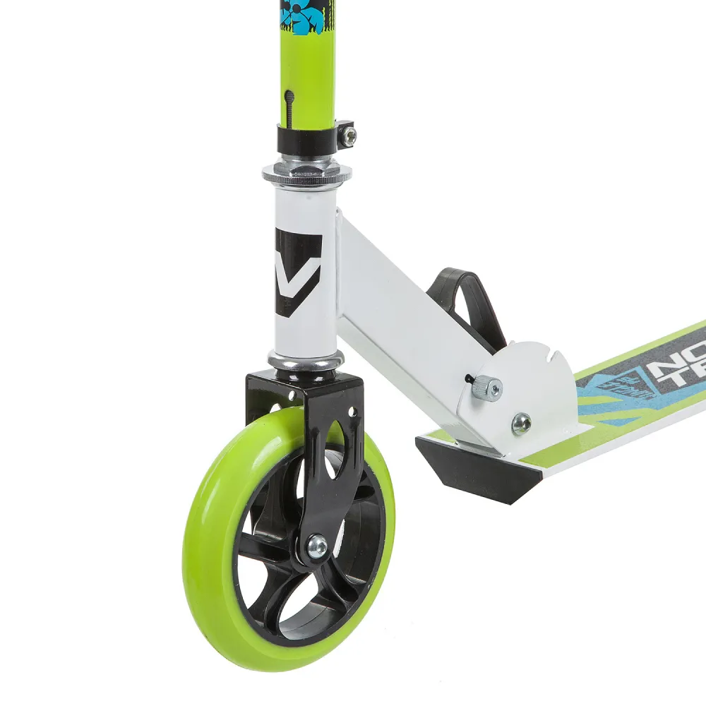 Сзади установлен ножной тормоз, который позволяет быстро остановиться при необходимости. Переднее колесо диаметром 145 мм и заднее колесо диаметром 125 мм обеспечивают отличную маневренность и устойчивость на любых поверхностях. Бело-зеленый дизайн добавляет яркости и стиля, делая каждую поездку увлекательной и безопасной.