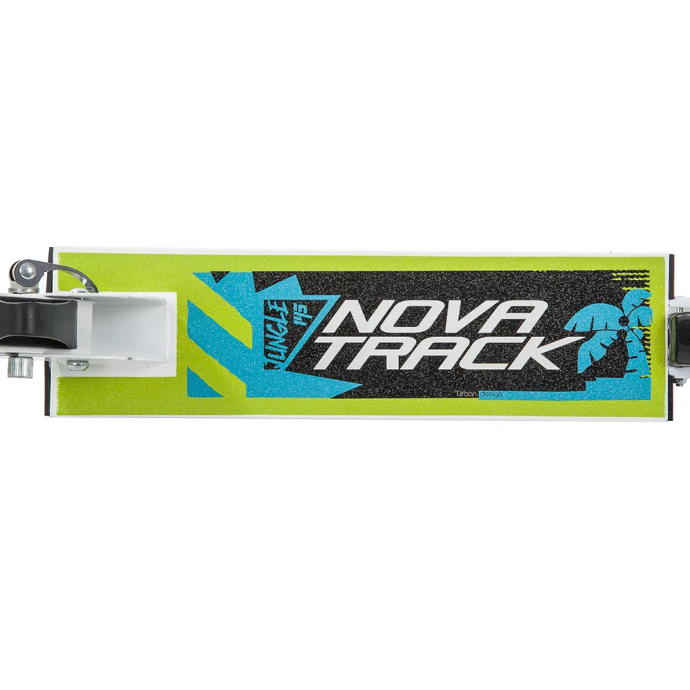 Самокат Novatrack JUNGLE 145 Steel бело-зеленый — идеальный выбор для юных городских исследователей. Этот городской самокат способен выдерживать нагрузку до 50 кг, что делает его подходящим для детей от 3 лет. Прочная стальная вилка и подшипники класса ABEC-7 обеспечивают плавное и надежное катание. Дека длиной 35 см и шириной 9.5 см покрыта пластиком, гарантируя комфорт и устойчивость.