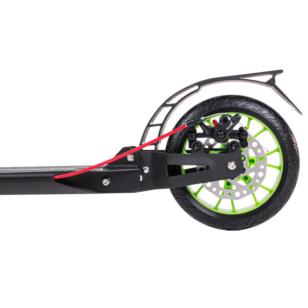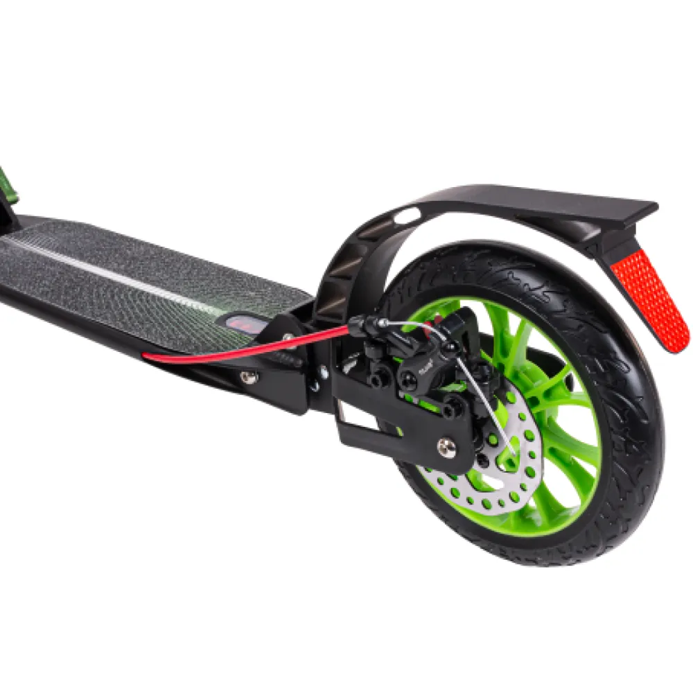 Самокат городской tech team city scooter disk brake зеленый – выглядит привлекательно и заметно на фоне других моделей. Привлекает внимание ярким современным дизайном, простотой управления, возможностью трансформирования до удобных для перевозки и хранения в квартире размеров. Купить самокат по демократичной цене, без вмешательства посредников предлагает наш интернет-магазин. Модель изготовлена из облегченного авиационного алюминия, благодаря которому масса техники сравнительно небольшая, составляет 6,1 кг. Модель рассчитана на подростков, начинающих пользователей. считается лучшей в своем сегменте. Рулевая стойка надежная, не деформируется при максимальной нагрузке до 50 кг, регулируется в 3-х положениях, от 88 см до 104 см. Оснащенность руля резиновыми анатомическими грипсами увеличивает степень комфорта и безопасности райдера. Платформа представлена стандартными размерами, не скользит благодаря шершавой шкурке. 200-мм колеса с инновационными подшипниками, накатистые, обещают отличный разгон. Своевременность торможения проводится с помощью фирменной тормозной системы. Надеемся, вам понравилась техника. если у вас остались вопросы, специалисты интернет-магазина готовы предоставить профессиональную консультационную помощь.