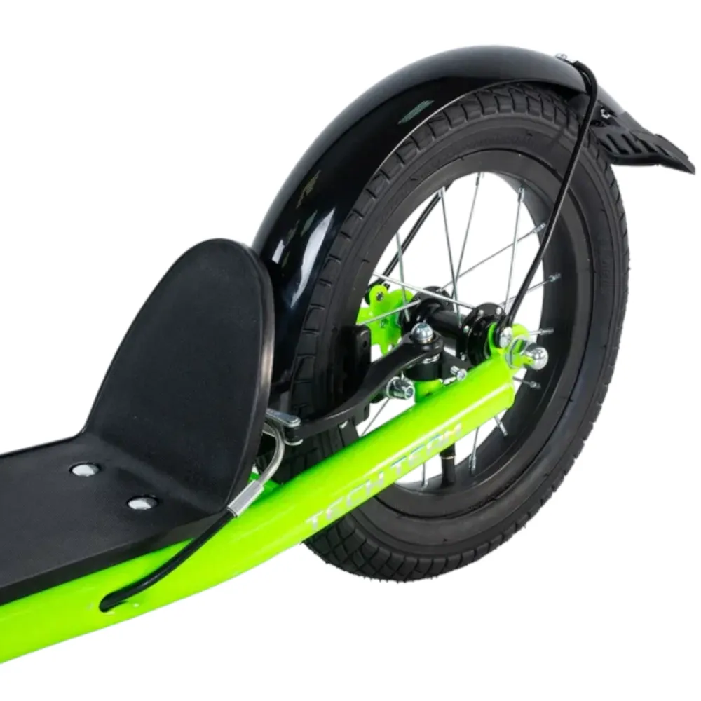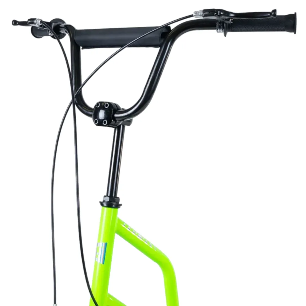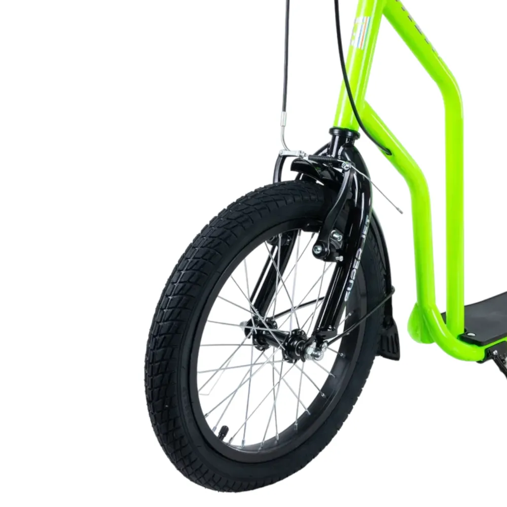 Самокат Tech Team Super Jet 700 2024 года в ярком салатовом цвете - это идеальный выбор для городских поездок. Его необычный дизайн напоминает велосипед, что делает его уникальным среди других самокатов. Спереди установлено большое колесо диаметром 406 мм, а сзади - поменьше, 305 мм, что обеспечивает отличную устойчивость и маневренность. Ободные тормоза и велосипедный руль с двумя ручками тормоза гарантируют надежное и безопасное управление. Максимальная нагрузка составляет 100 кг, а рама выполнена из легкого алюминия, что делает самокат весом всего 8,1 кг. Этот самокат сочетает в себе стиль, удобство и надежность.