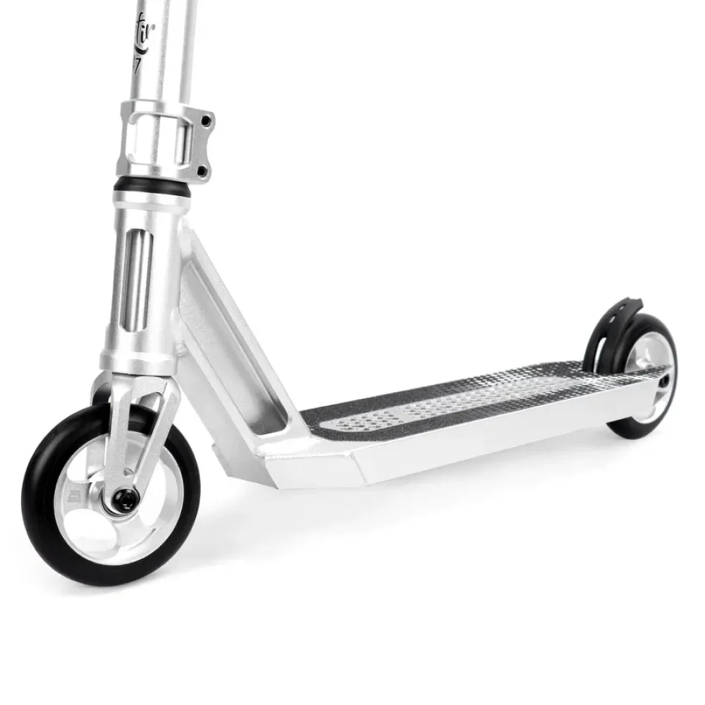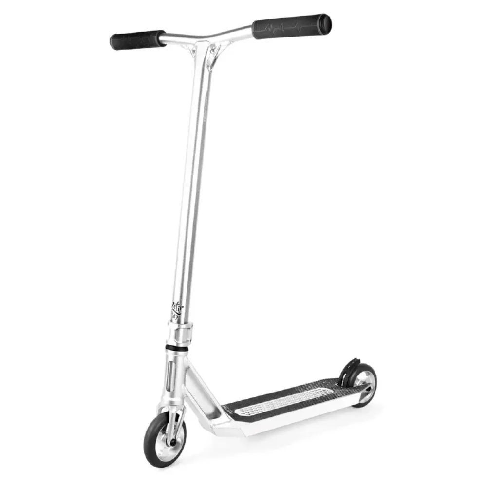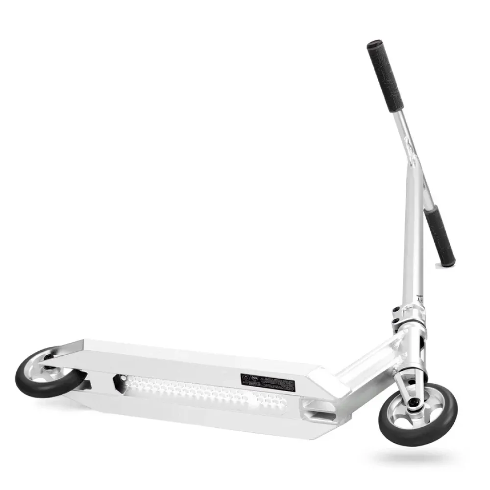 Этот самокат имеет широкую деку шириной 120 мм и длиной 470 мм, выполненную из прочного алюминия. Благодаря такой конструкции, самокат обладает оптимальным соотношением прочности и легкости, что позволяет выполнять сложные трюки с легкостью.