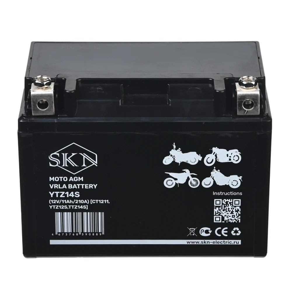 Аккумулятор стартерный для мототехники SKN YTZ14S (12V/11Ah/210A) [CT 1211, YTZ12S,TTZ14S]