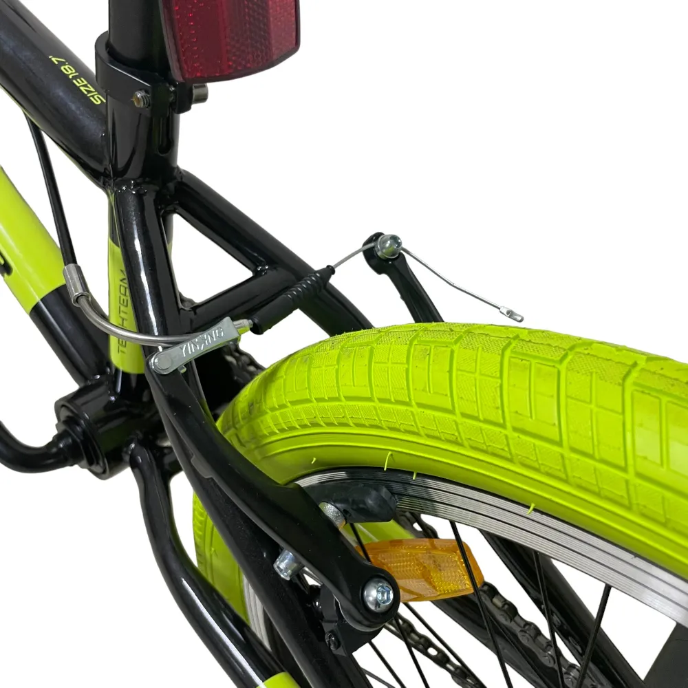 Велосипед BMX Tech Team GOOF 2024 в черном цвете с зеленоватыми рулем и покрышками – это сочетание стиля и надежности. С максимальной нагрузкой до 110 кг и 20-дюймовыми колесами, этот велосипед легко справится с любыми испытаниями. Ободные тормоза V-типа из алюминия спереди и сзади обеспечат безопасность и контроль. Стальная вилка и рама размером 18,7 дюйма делают этот велосипед прочным и готовым к любым трюкам. Пеги на передних и задних колесах и трещотка на 16 зубьев добавляют функциональности и делают его идеальным для экстремальных видов спорта.