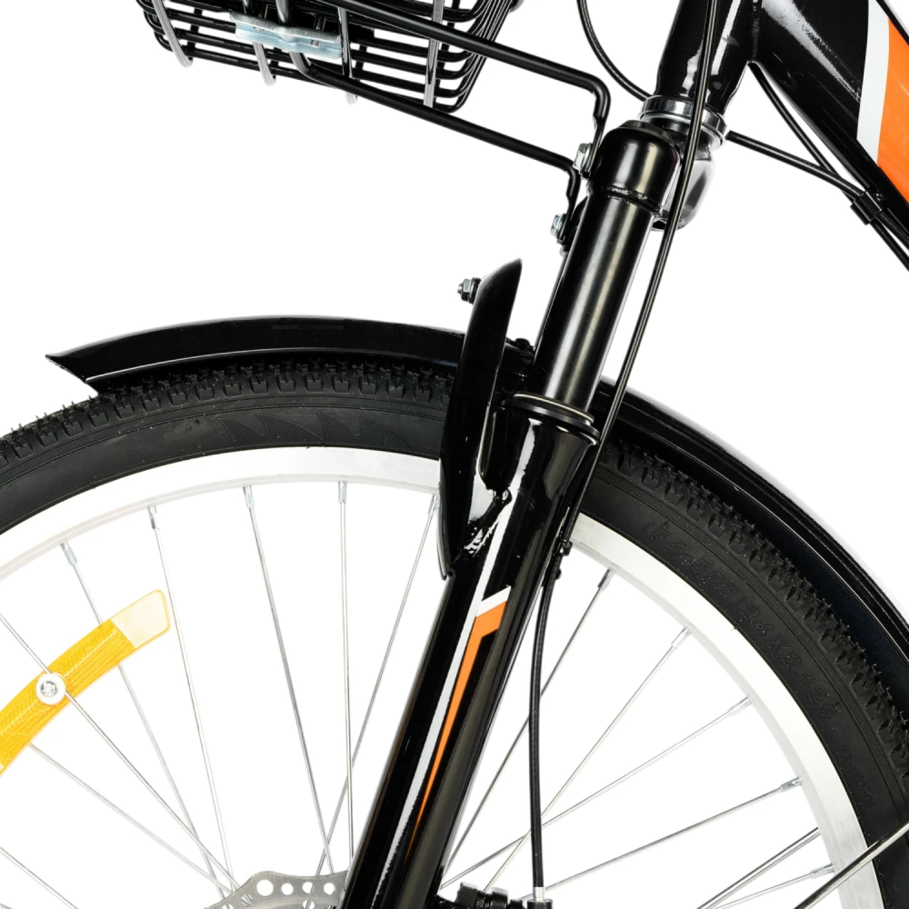 Отличается от других РВЗ складной усиленной стальной рамой с механизмом фиксации, широкими внедорожными покрышками и двойными корзинами — это базовая 1-скоростная версия без электроники. Преимущества перед аналогами вроде Forward или Stels (20–30 тыс. руб.): лучшая устойчивость трёхколёсной схемы и амортизация для неровностей; вес ~26 кг тяжелее двухколёсных. Добавлена усиленная рама; версии — в цветах (серебро, чёрный, синий); наград нет, уникальных технологий тоже.